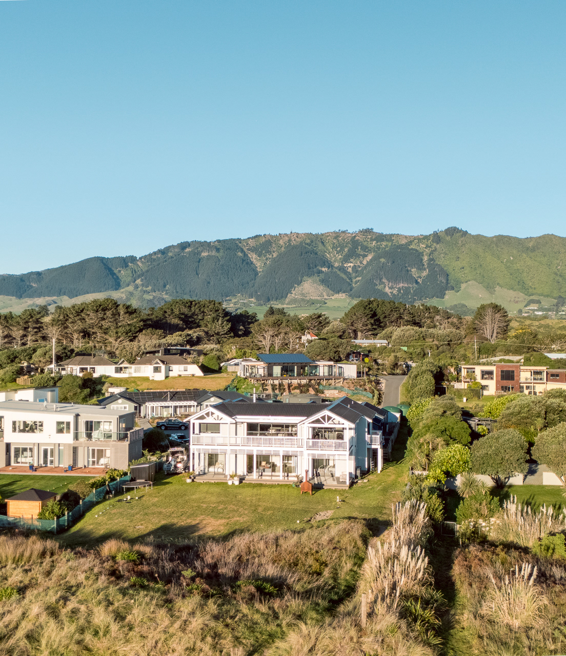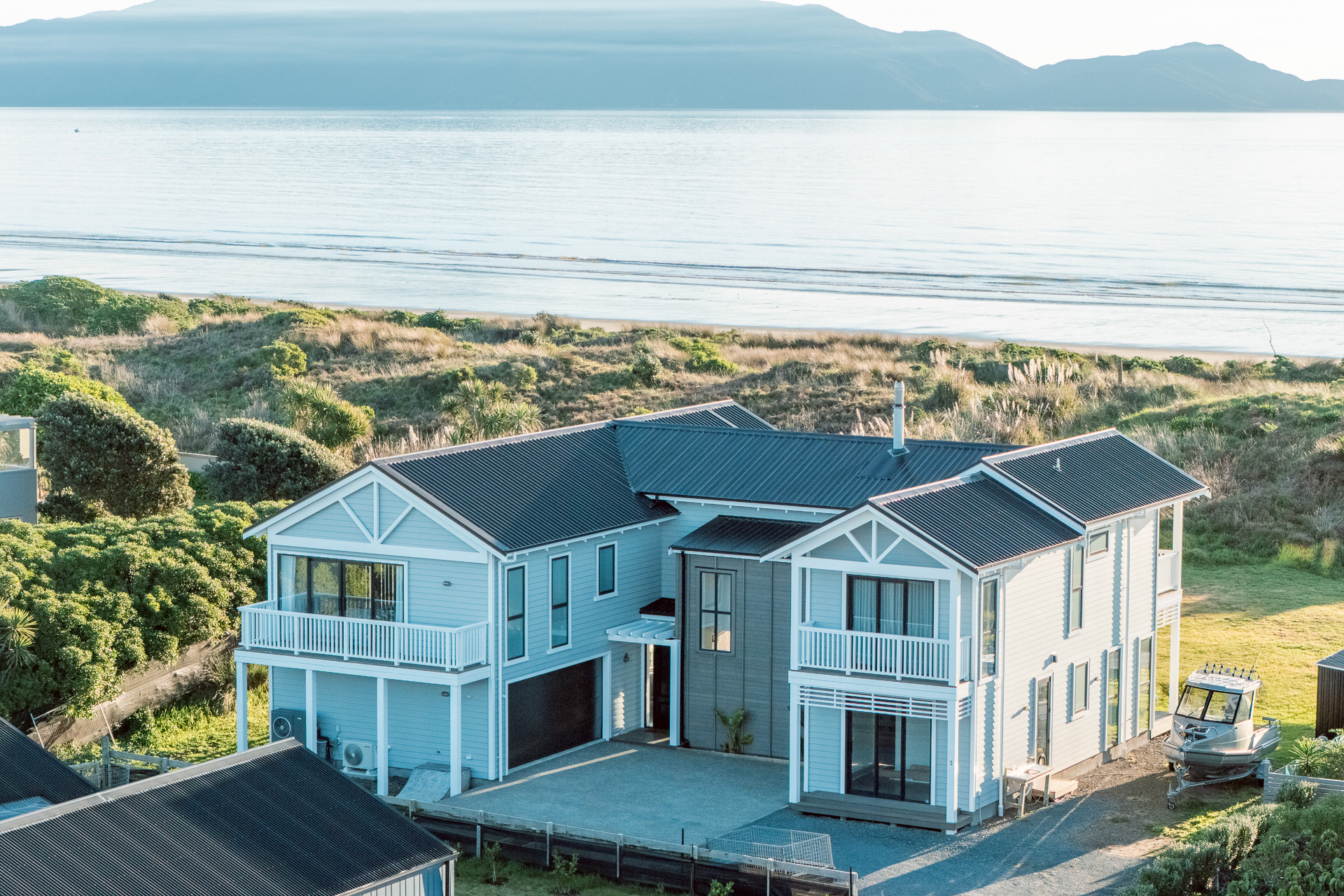 Nestled amongst the dunes of Peka Peka on the Kāpiti Coast, this home was imagined as a relaxed coastal retreat. The clients sought a contemporary family home based on a hamptons aesthetic, where everyday life and holiday living would intersect. Their brief called for a house that could withstand the changing coastal environment while remaining warm, tactile and low-maintenance, expressing a modern take on the region’s coastal vernacular.