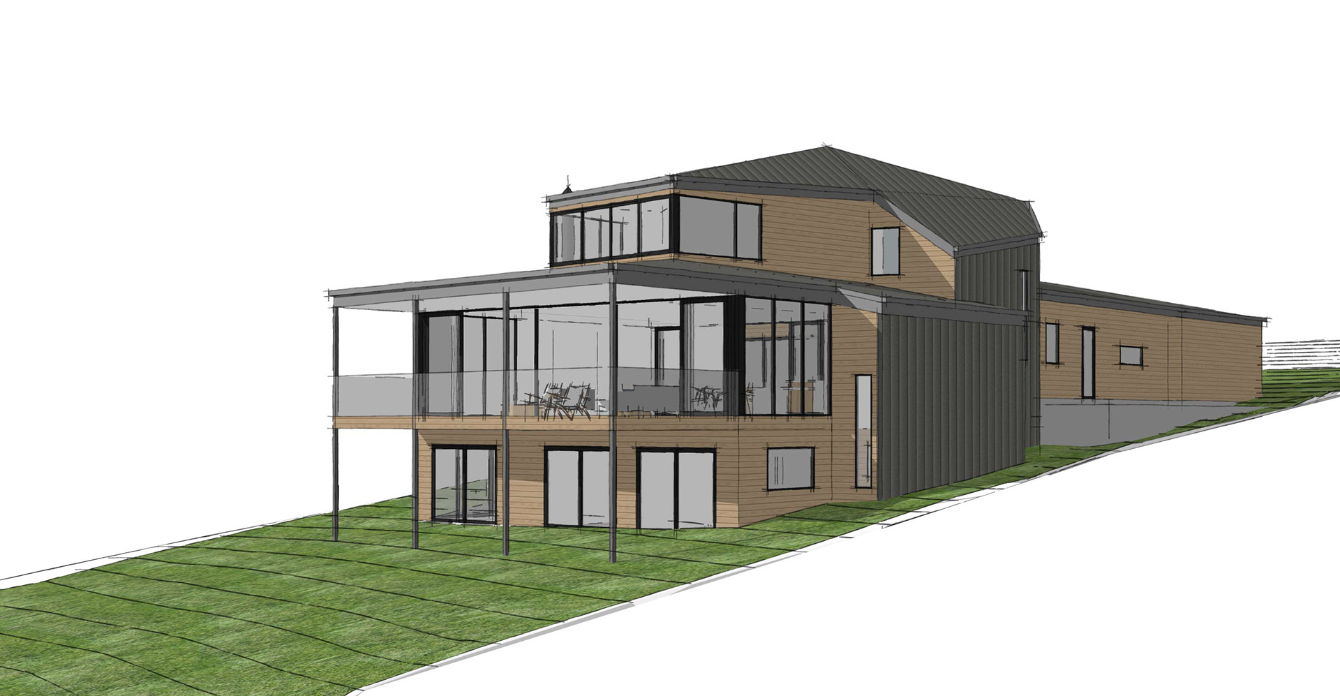 New home on the coast where the panoramic views and connection to outdoor living was paramount. Spaces are arranged for maximising privacy and easy living. The ground floor level is split into two wings one for family bedrooms and garaging, the other for living areas. A lower level contains a seperate minor dwelling. The first floor houses the master bedroom and ensuite making the most of the coastal views.