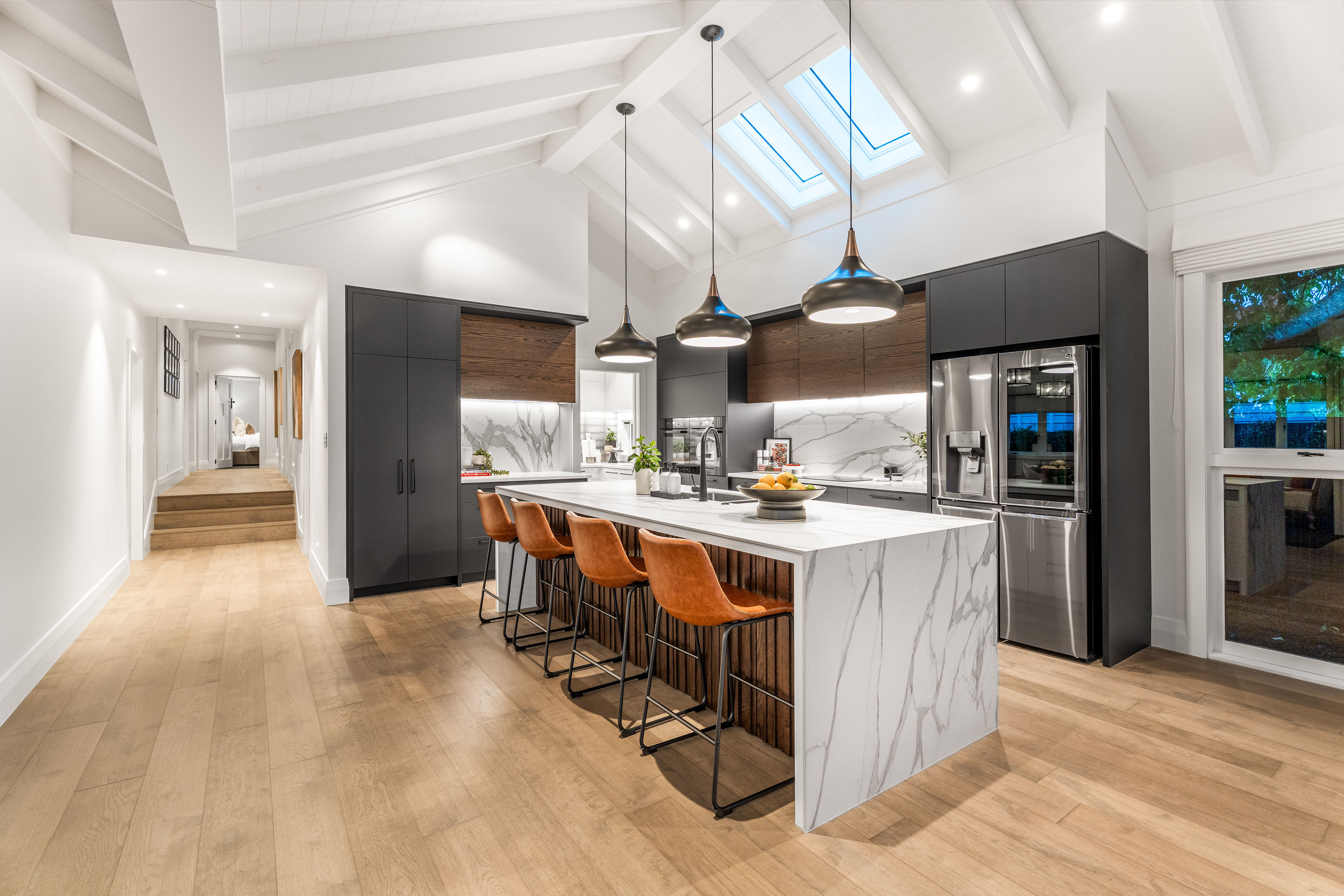 This Mount Eden bungalow has been renovated and extended to accommodate the needs of a growing family, combining the character of the original home with a contemporary addition. The existing frontage is retained, maintaining the home’s presence within its established streetscape, while new living spaces are introduced to the rear. The extension increases the scale of the home, with a focus on improving circulation, access to outdoor areas and the quality of natural light throughout. Openings provide direct access to the deck and garden, creating connection between interior spaces and outdoors.