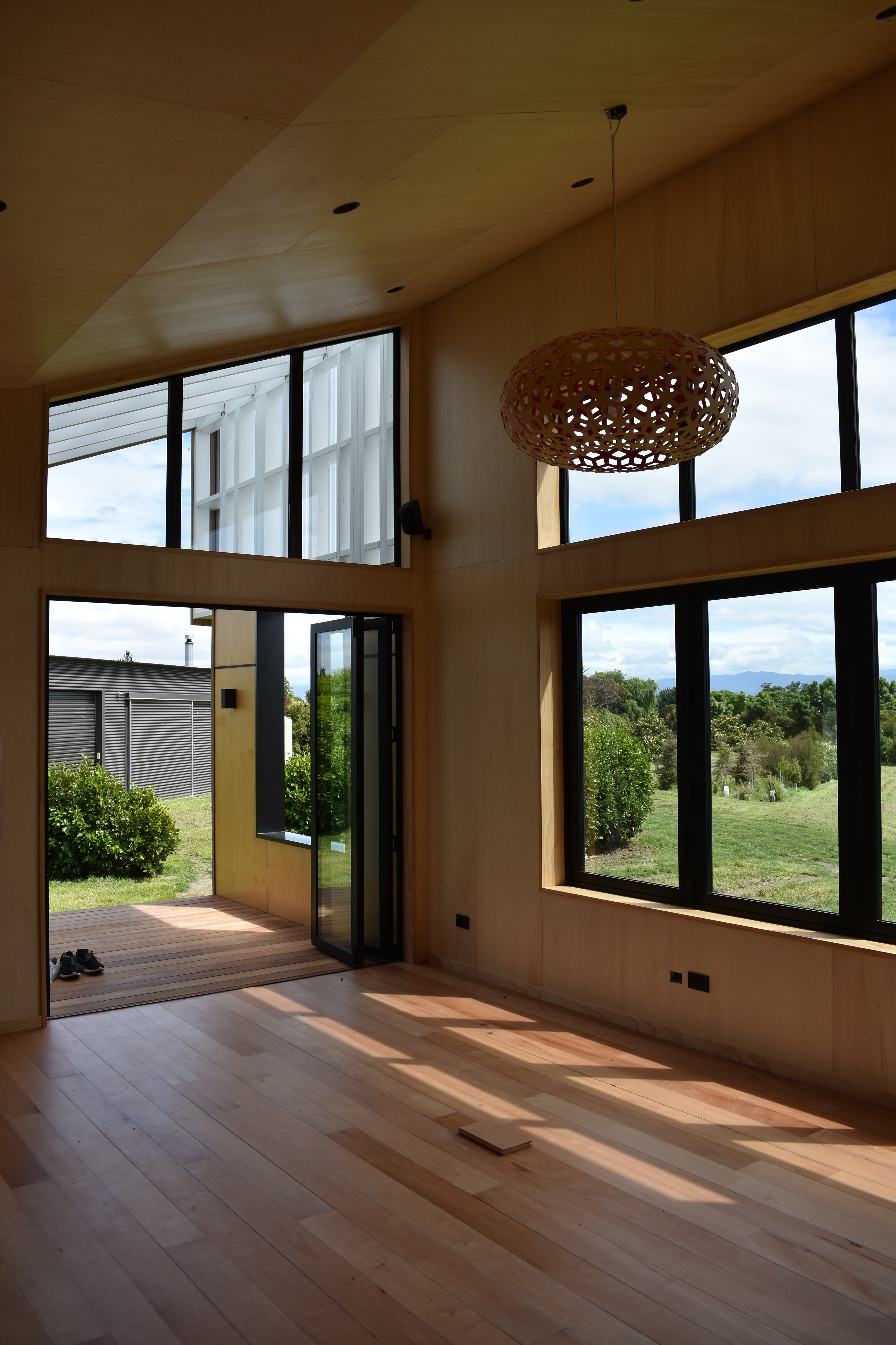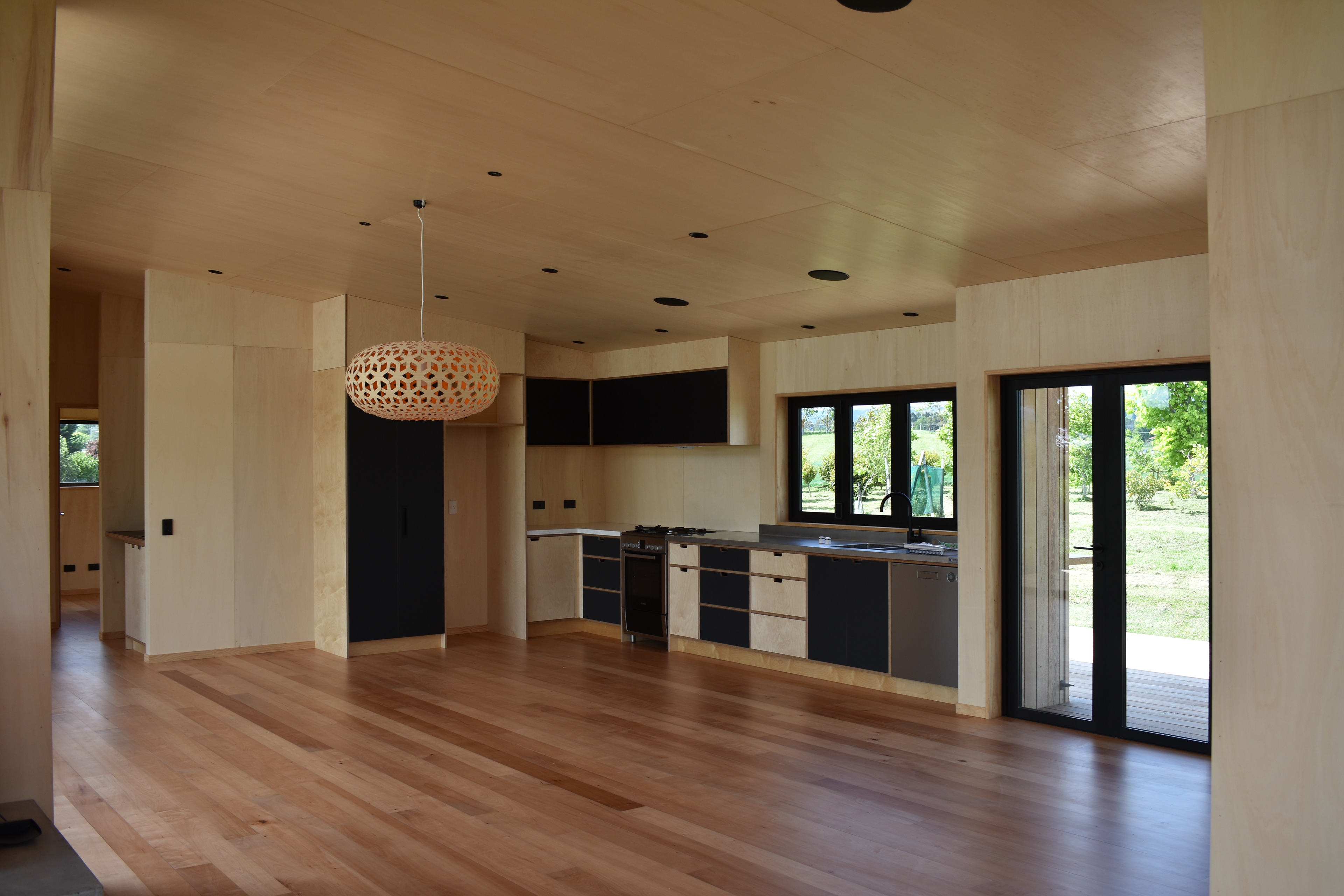 A new Bach for a busy family wanting refuge in the small community of Martinborough for weekends and holidays with friends away from the hustle and bustle of Wellington City. Warm timber interiors with generous open plan living creates a relaxed environment. Outside deck areas with translucent screening provide sheltered pockets to enjoy country sunsets.