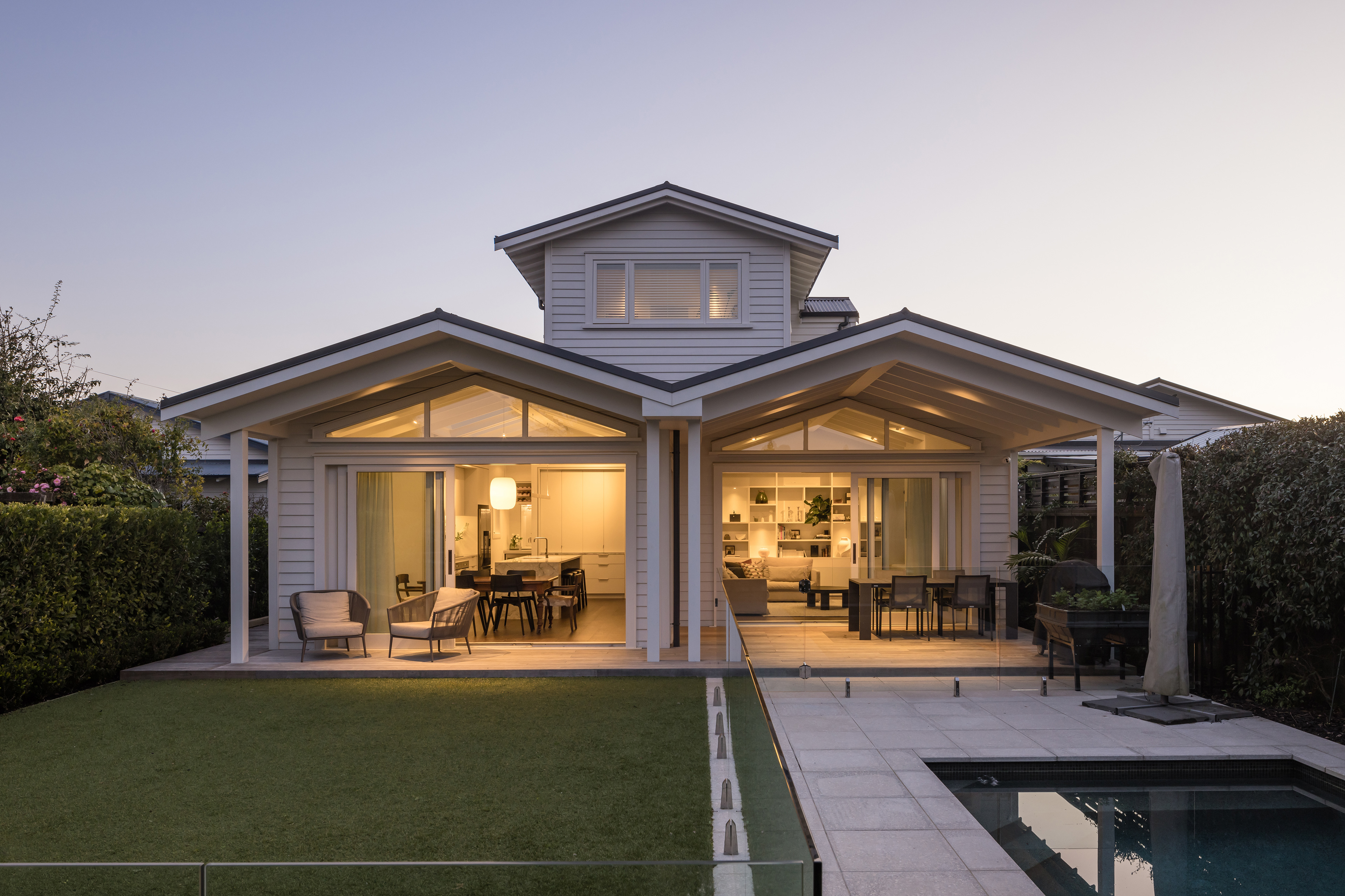 Located in the vibrant heart of Auckland's cherished Pt Chevalier neighborhood, this bungalow was in need of a re-design. Presenting an opportunity to extend the rear of the house and add another level, blending modern living with traditional design, preserving the home’s original character while introducing contemporary comforts. The extension features a spacious open-plan living area, where the kitchen and dining spaces converge around a striking central island—this elegant centrepiece serves both functional and aesthetic purposes. The design also incorporates a separate scullery kitchen, enhancing the home's practicality and flow. This project exemplifies how modern design can harmoniously coexist with traditional elements, resulting in a family home that is both stylish and deeply rooted with its original character.
