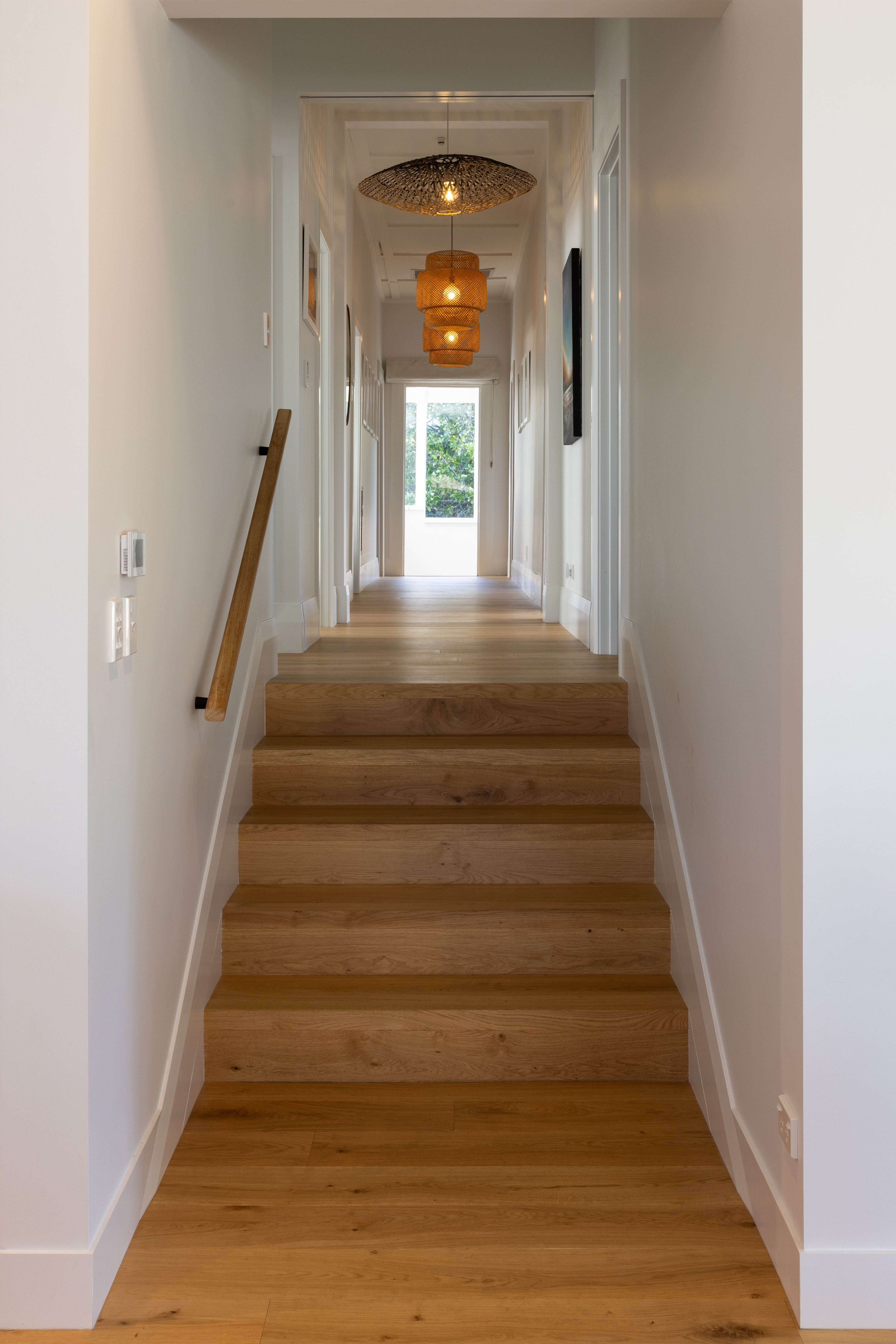 Located in the heritage precinct of Northcote Point, this project is a thoughtful renovation and extension of an early New Zealand bungalow. While the character of the original home is respected throughout, the renovation introduces new spatial clarity, natural light and a stronger connection to the outdoors. At the rear, a light-filled extension opens up the plan with raked ceilings, skylights and large glazed doors that frame views to the garden. Materials and textures draw on the character of the original bungalow while introducing a fresh, refined palette.